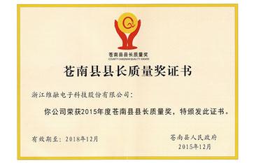 蒼南縣長質量獎證書